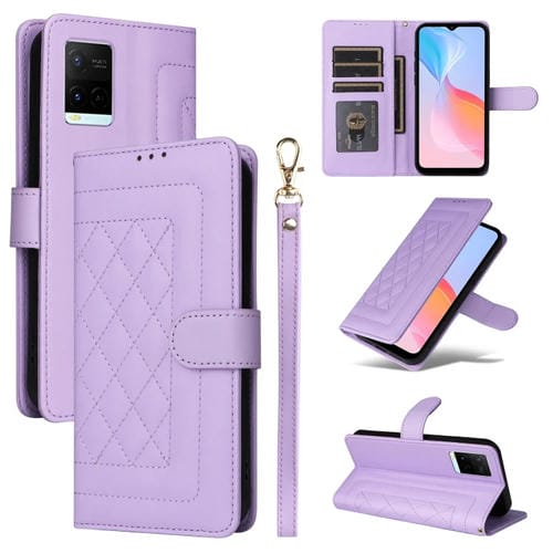 Para Vivo Y21 / Y33S Funda para Teléfono con Tapa de Cuero con Entramado de Diamantes (Púrpura Claro)