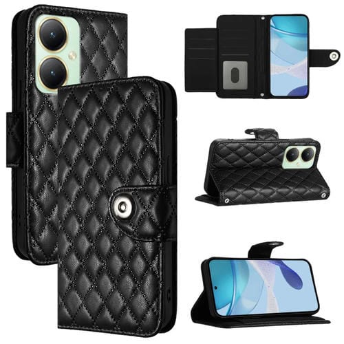 Para Vivo Y27 4G Global Rhombic Texture Funda de Cuero con Tapa para Teléfono con Cordón (Negro)