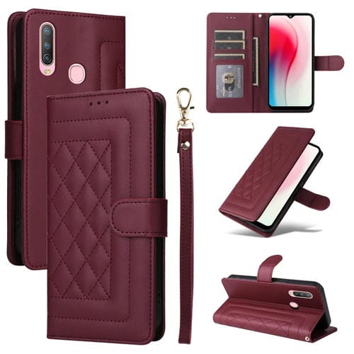 Para Vivo Y3 / Y17 Funda para Teléfono con Tapa de Cuero Diamond Lattice (Rojo Vino)