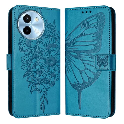 Para Vivo Y38 5G Funda de Cuero con Mariposa En Relieve (Azul)