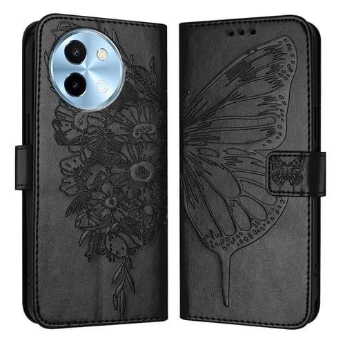 Para Vivo Y38 5G Funda de Cuero con Mariposa En Relieve (Negro)