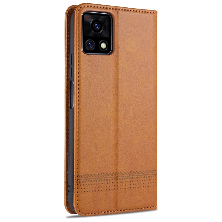 Para Vivo Y52S Azns Funda de Cuero con Tapa Magnética con Textura de Becerro Horizontal con Ranuras para Tarjetas, Soporte y Billetera (Marrón Claro)