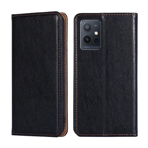 Para Vivo Y52T Caja de Teléfono de Cuero Magnético de Color Sólido de Aceite Brillante (Negro)