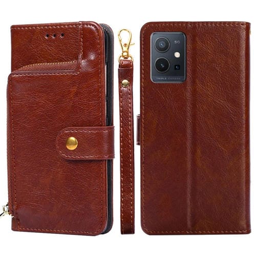 Para Vivo Y52T Funda con Cremallera para Teléfono con Tapa de Cuero (Marrón)