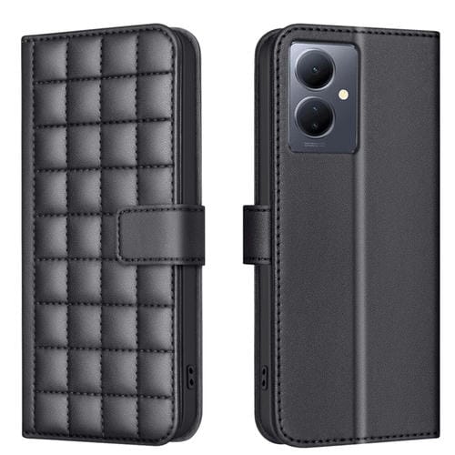 Para Vivo Y78 5G / Y36 Funda de Cuero para Teléfono con Textura Cuadrada (Negro)