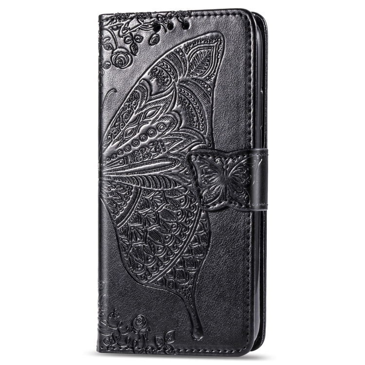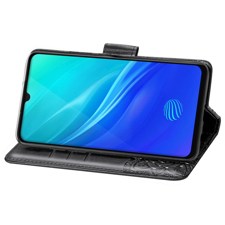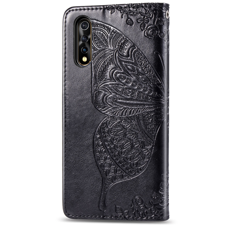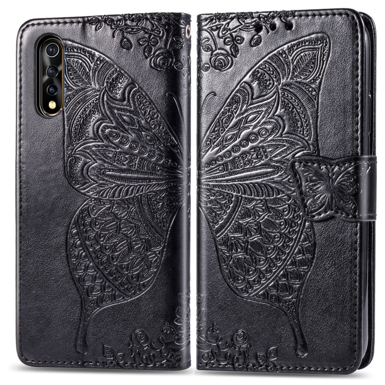 Para Vivo Y7S / S1 Butterfly Love Flowers Estuche de Cuero con Tapa Horizontal En Relieve con Soporte y Ranuras para Tarjetas y Billetera y Cordón (Negro)