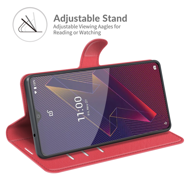 Funda Protectora Wiko Power U20 Litchi Texture con Soporte y Ranuras para Tarjetas (Rojo)