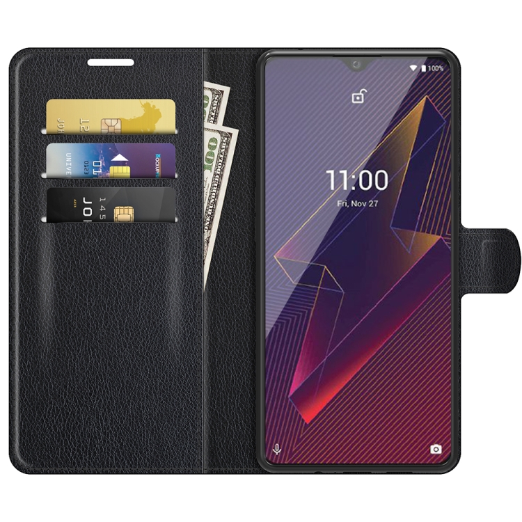 Funda Protectora Wiko Power U20 Litchi Texture con Soporte y Billetera (Negro)