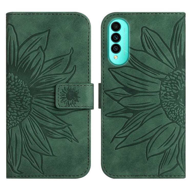 Funda Flip de Cuero para Wiko T50 Skin Feel con Cordón (Verde) y Estampado Sun Flower
