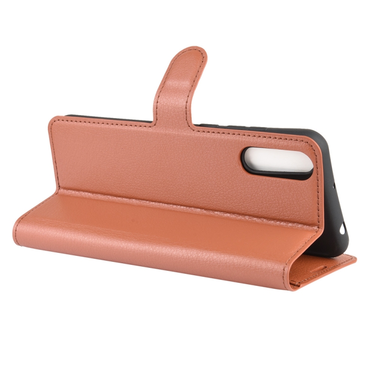 Funda Protectora para Wiko View 4/4 Lite Litchi Texture con Tapa Horizontal, Soporte, Ranuras para Tarjetas y Billetera (Marrón)