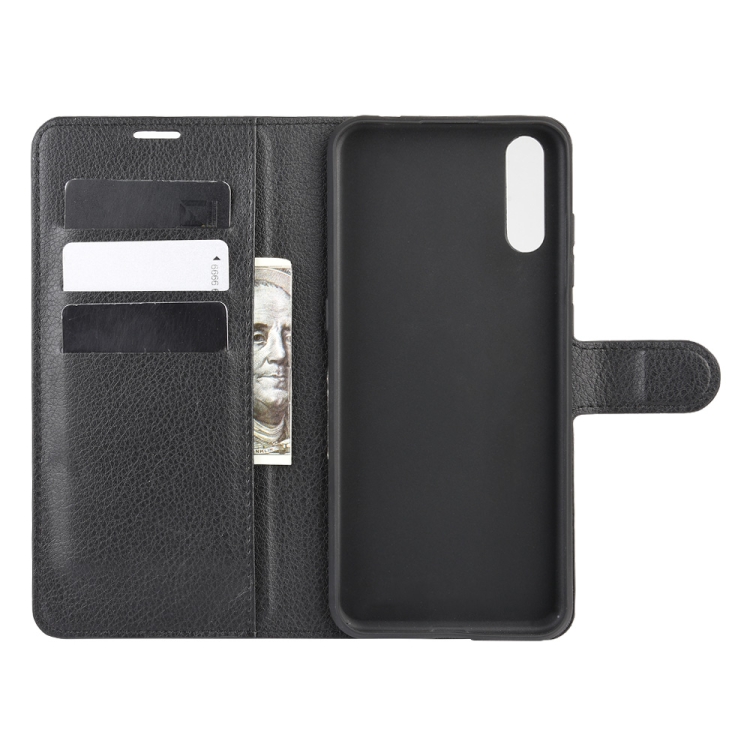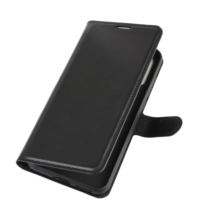 Funda Protectora para Wiko View 4 y 4 Lite Litchi Texture con Tapa Horizontal, Soporte, Ranuras para Tarjetas y Billetera (Negro)