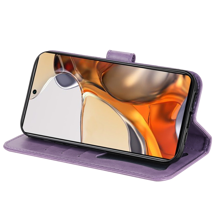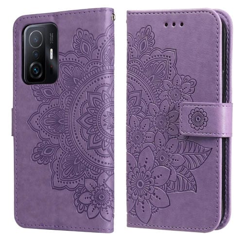 Para Xiaomi 11T / 11T Pro 7-Petal Flores Enfssing Flipsing Horizontal Flip Tele Funda con El Soporte y Las Ranuras de Las Tarjetas (Púrpura Claro)