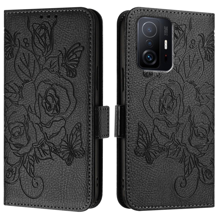 Para Xiaomi 11T / 11T Pro Funda de Teléfono de Cuero Antirrobo Rfid con Relieve Rosa (Negro)
