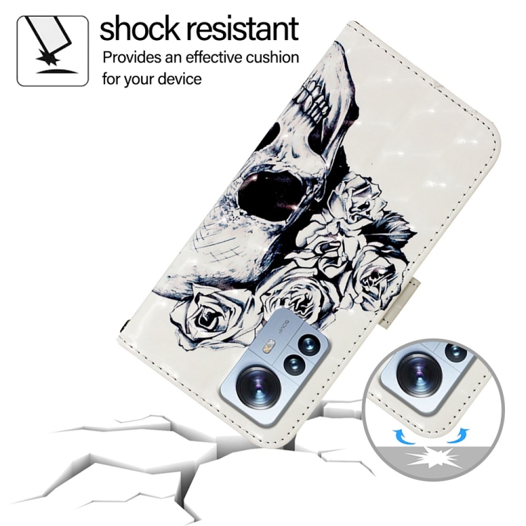 Para Xiaomi 12 Pro / 12S Pro Funda para Teléfono de Cuero con Tapa Horizontal con Pintura 3D (Calavera)