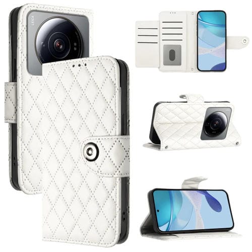 Para Xiaomi 12S Funda de Cuero con Tapa con Textura Ultra Rómbica y Cordón (Blanco)