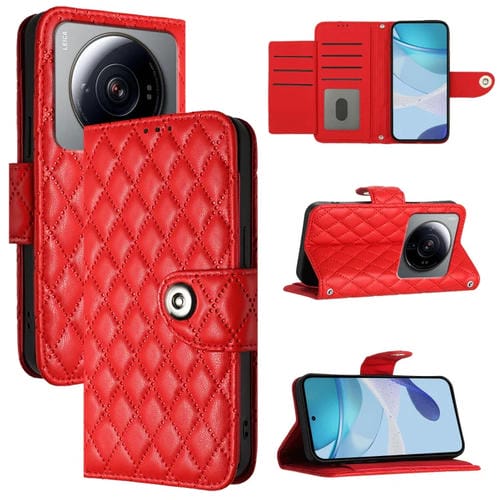 Para Xiaomi 12S Funda de Cuero con Tapa con Textura Ultra Rómbica y Cordón (Rojo)