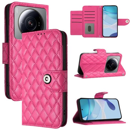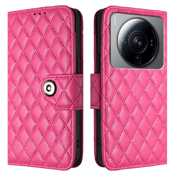 Para Xiaomi 12S Funda de Cuero con Tapa con Textura Ultra Rómbica y Cordón (Rojo Rosa)
