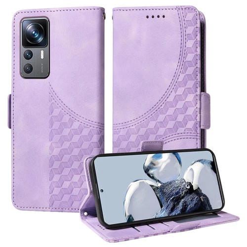 Para Xiaomi 12T / 12T Pro Funda de Teléfono de Cuero Estrellado con Rombos En Relieve (Púrpura)