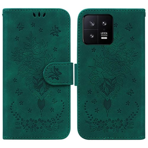 Para Xiaomi 13 5G Butterfly Rose Estuche para Teléfono de Cuero En Relieve (Verde)