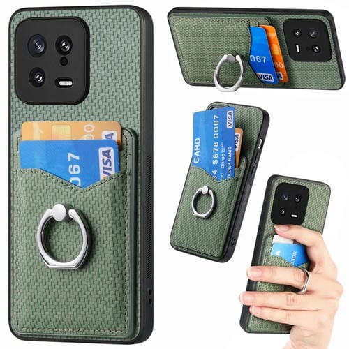 Para Xiaomi 13 Carbon Fiber Card Wallet Ring Holder Phone Case (Verde)