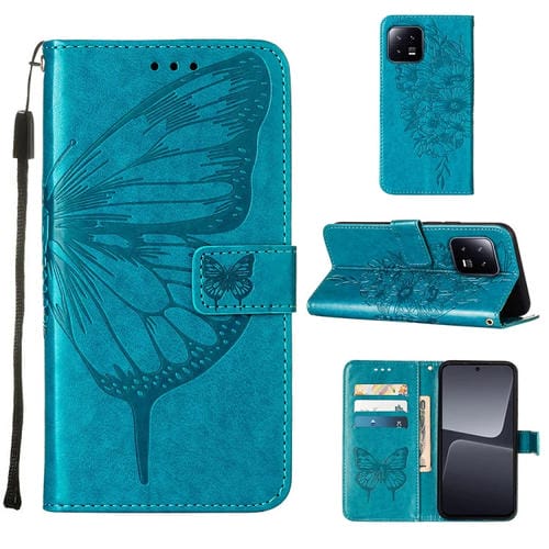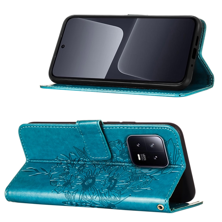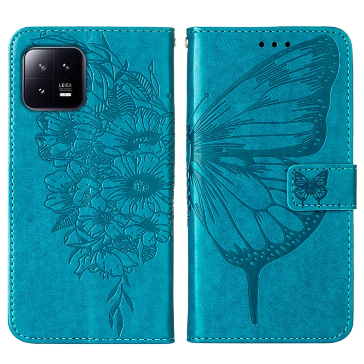 Para Xiaomi 13 Estuche para Teléfono de Cuero con Mariposa En Relieve (Azul)