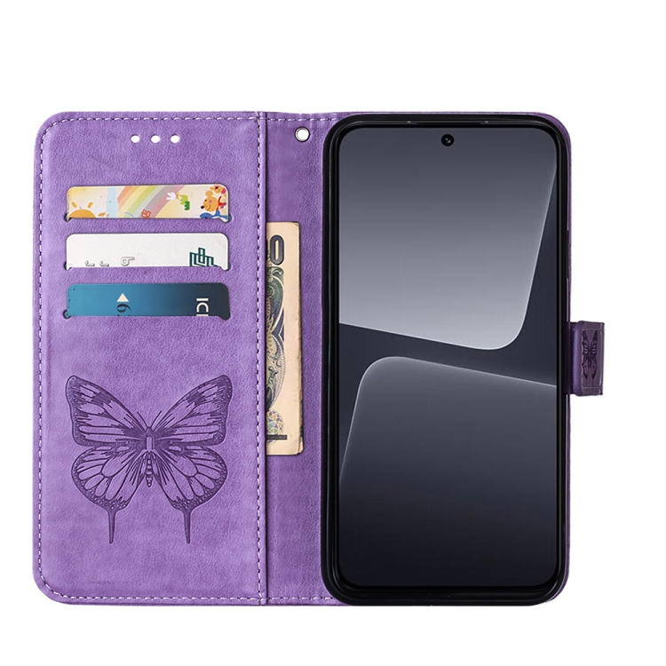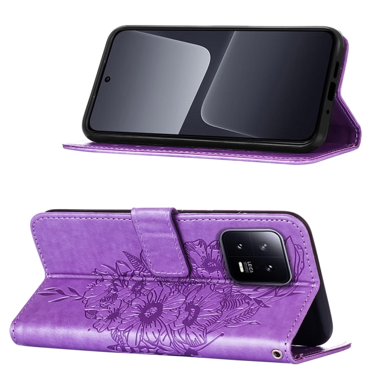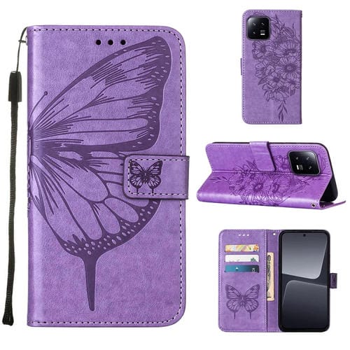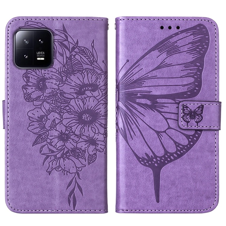 Para Xiaomi 13 Estuche para Teléfono de Cuero con Mariposa En Relieve (Púrpura Claro)