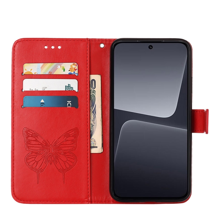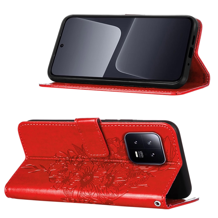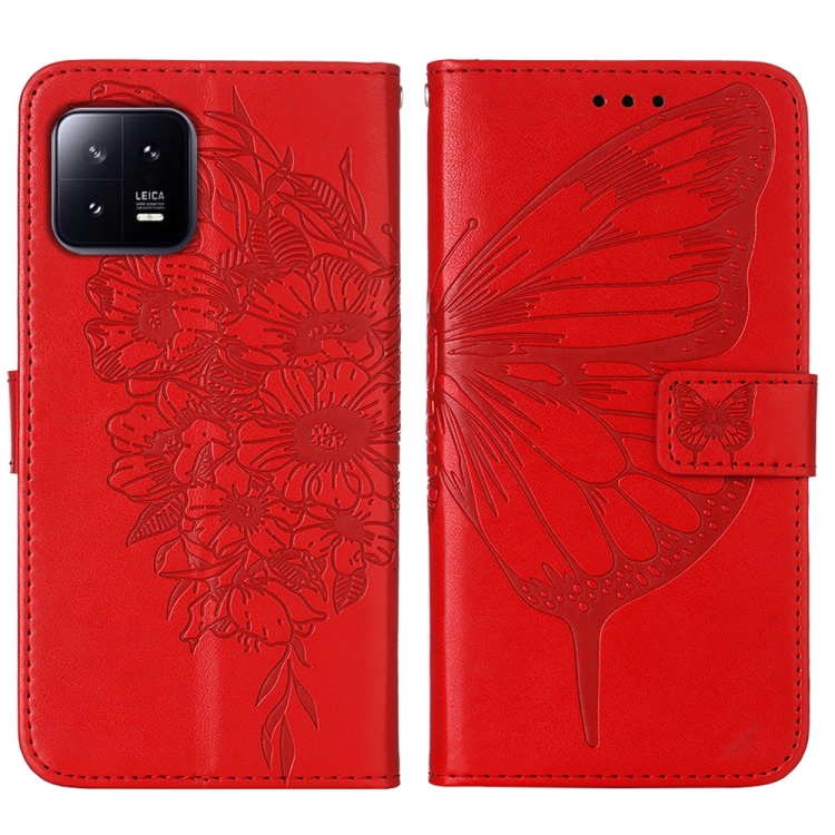 Para Xiaomi 13 Estuche para Teléfono de Cuero con Mariposa En Relieve (Rojo)