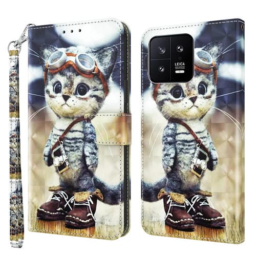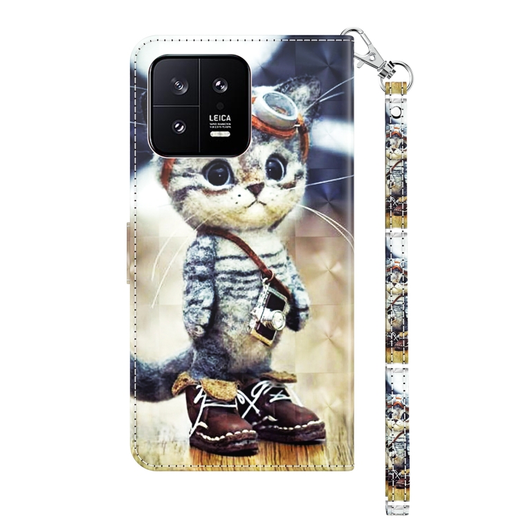Para Xiaomi 13 Estuche para Teléfono de Cuero con Patrón Pintado En 3D (Gato Travieso)