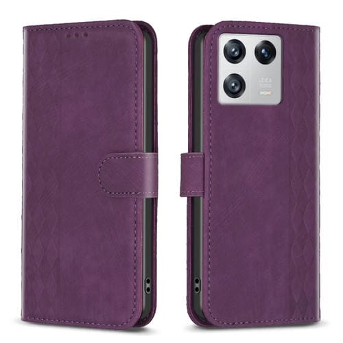 Para Xiaomi 13 Estuche para Teléfono de Cuero En Relieve a Cuadros (Púrpura)