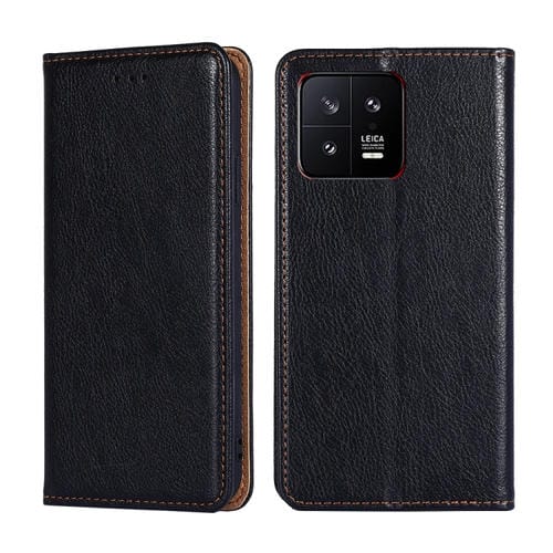 Para Xiaomi 13 Estuche para Teléfono de Cuero Magnético de Color Sólido con Aceite Brillante (Negro)