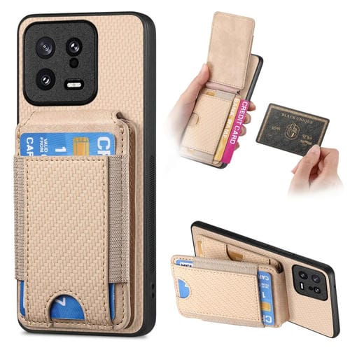 Para Xiaomi 13 Funda para Teléfono con Soporte y Billetera con Tapa Vertical de Fibra de Carbono (Caqui)