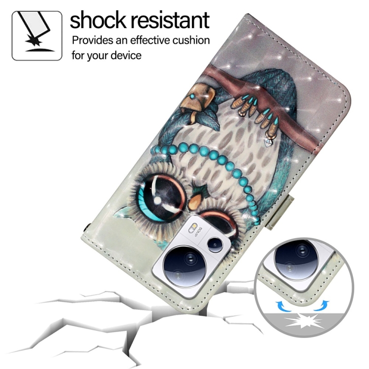 Para Xiaomi 13 Lite / Civi 2 Funda para Teléfono de Cuero con Tapa Horizontal con Pintura 3D (Búho Gris)