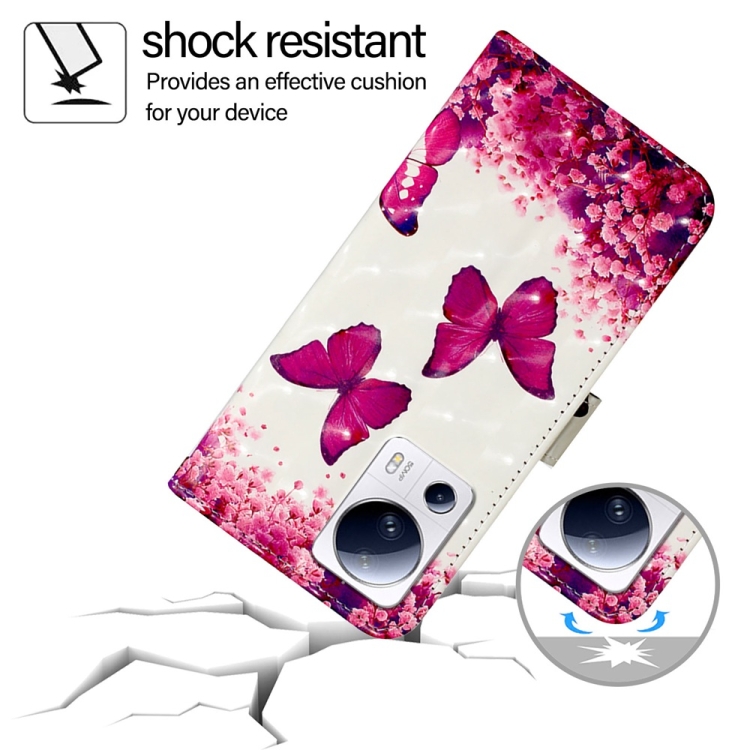 Para Xiaomi 13 Lite / Civi 2 Funda para Teléfono de Cuero con Tapa Horizontal con Pintura 3D (Mariposa Rosa)