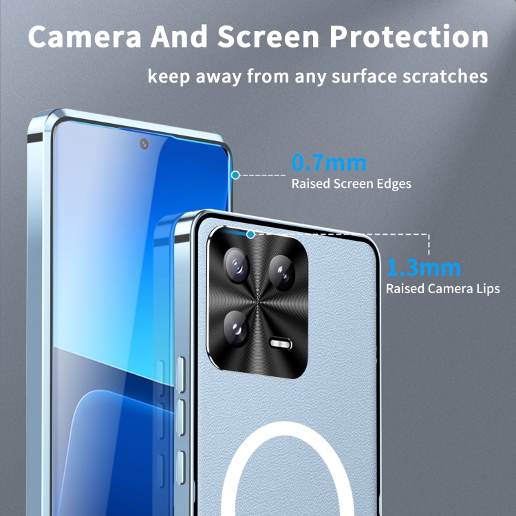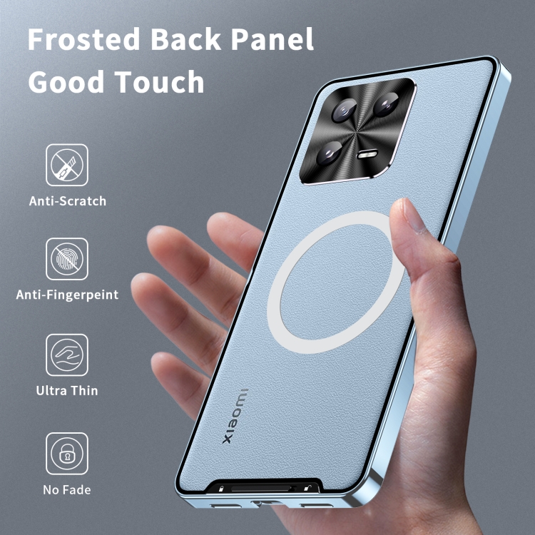 Para Xiaomi 13 Magsafe Caja de Teléfono de Metal Esmerilado Magnético (Azul)