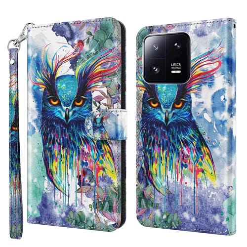 Para Xiaomi 13 Pro 3D Patrón de Pintura Flip Funda de Cuero para Teléfono (Búho de Acuarela)