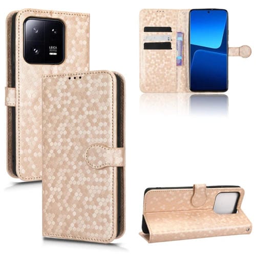 Para Xiaomi 13 Pro Honeycomb Dot Texture Leather Phone Case (Oro)