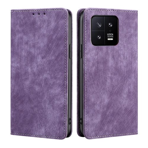 Para Xiaomi 13 Rfid Funda de Teléfono de Cuero Magnético con Cepillo Antirrobo (Púrpura)