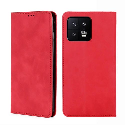 Para Xiaomi 13 Skin Feel Magnetic Horizontal Flip Leather Phone Case (Rojo)
