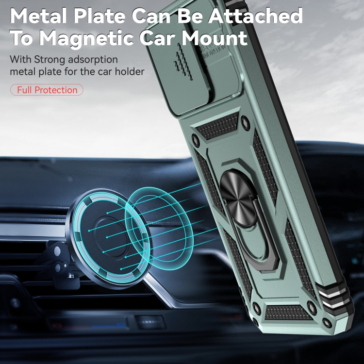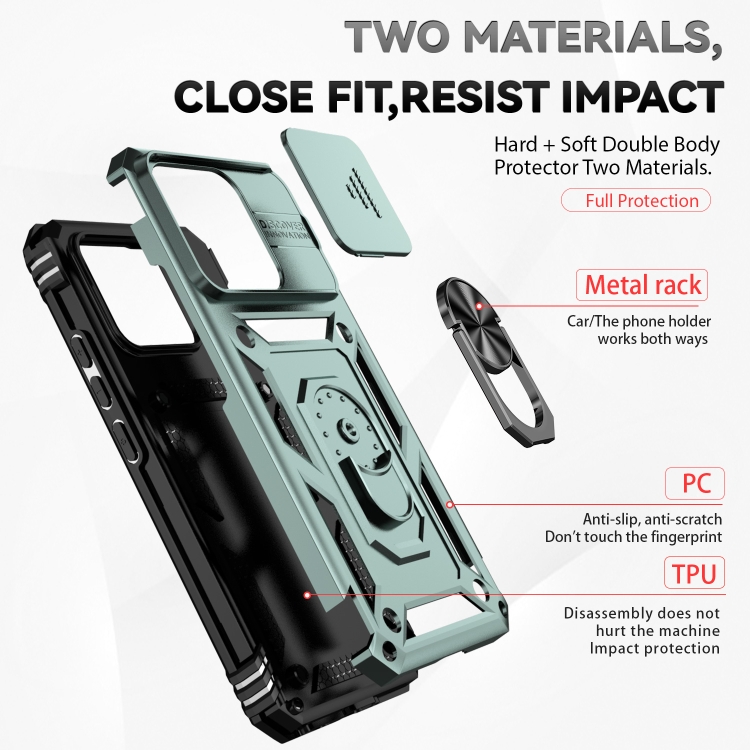 Para Xiaomi 13 Sliding Camshield Holder Phone Case (Verde Oscuro)