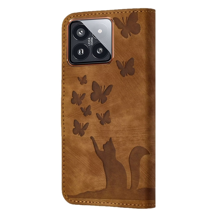 Para Xiaomi 14 Butterfly Cat Embossing Flip Funda De Cuero Para Teléfono (Marrón)