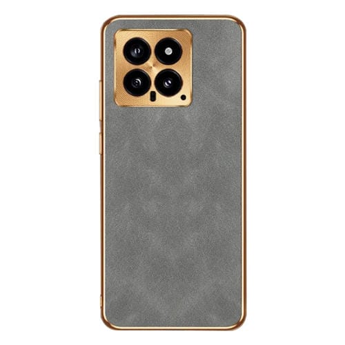 Para Xiaomi 14 Funda De Cuero De Piel De Cordero Galvanizada (Gris)