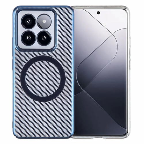 Para Xiaomi 14 Pro 6D Caja De Teléfono Para Pc Magsafe Transparente De Fibra De Carbono Plateada (Azul Sueño)