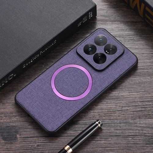 Para Xiaomi 14 Pro Cd Funda Para Teléfono Pu Con Textura De Tela Magnética (Púrpura)