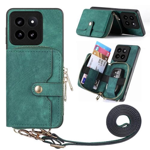 Para Xiaomi 14 Pro Crossbody Funda Para Teléfono Con Billetera Con Cremallera Multifunción (Verde)