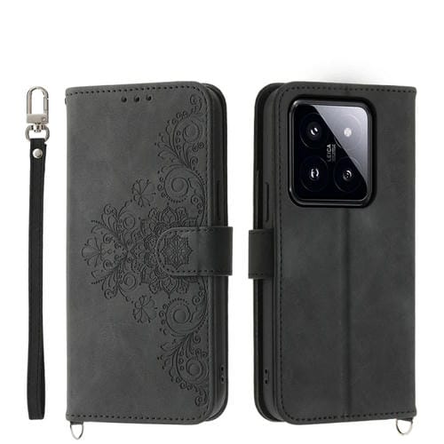 Para Xiaomi 14 Pro Funda De Cuero Para Teléfono Con Billetera En Relieve Y Flores Con Sensación De Piel (Negro)