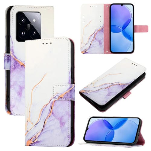 Para Xiaomi 14 Pro Pt003 Funda De Teléfono De Cuero Con Tapa Con Patrón De Mármol (Blanco Púrpura)