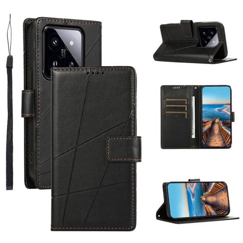 Para Xiaomi 14 Pro Pu Funda De Teléfono Con Línea En Relieve Con Textura De Cuero Genuino (Negro)