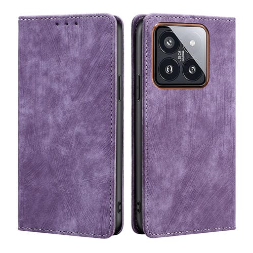 Para Xiaomi 14 Pro Rfid Funda De Teléfono De Cuero Magnético Con Cepillo Antirrobo (Púrpura)