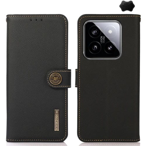 Para Xiaomi 14 Ultra Khazneh Custer Texture Rfid Funda Para Teléfono De Cuero Genuino (Negro)