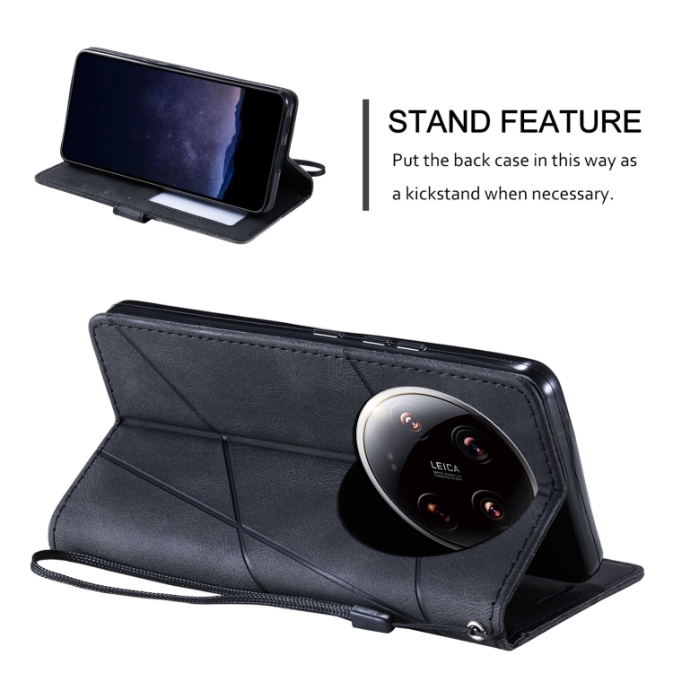 Para Xiaomi 14 Ultra Skin Feel Empalme Funda De Cuero Para Teléfono (Negro)